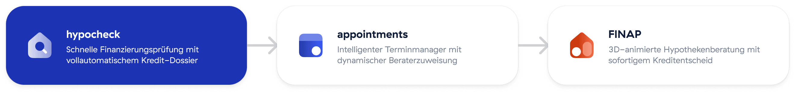 The desire for a mortgage does not arise during the consultation. It happens when people are in front of their dream home. Thanks to real-time financial assessment and fully automated credit dossier, Home Check reaches new customers at the right moment.